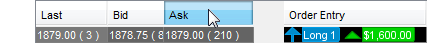 An order can be placed from the Advanced Options frame by left- or right-clicking one of the Last / Bid / Ask columns (tip: This feature exists in any frame that displays these columns). Advanced Options must be in One-click-trading Mode in order to take advantage of this method of Order Entry. General (but in-depth) Order Entry introductory material can be found in the Order Entry section of this Help. Order Entry settings can be changed from the Order Entry Properties dialog. Click here to learn more about these. Details regarding your orders and positions are displayed in the Order Entry cells in this frame. (If Order Entry columns are not displayed, they can be added from the Underlying Columns, Options Columns or Fixed Columns tab of the Advanced Options Properties.) A right-click on the Order Entry cell launches a pop-up menu that can lead to the Contingencies menu, as well as other choices, described here. |