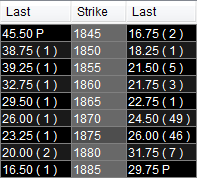 Last - The price of the last trade (or settlement marked with an S if the market has closed and the settlement price has already been sent). It can also display a pre-/post- trade indicator (P) for pre-/post- session prices (applicable for equity quotes), not to be confused with the P displayed as a previous settlement indicator (in the case of futures). The D mark informs that data is being disseminated with delay. The Last cells will be highlighted whenever a new trade is made, which forces the value change. In order to change the color of the highlight please go to the Advanced Options Properties dialog, Look tab, Last, Low and High highlight colors. You can also select the Last Foreground like Net Change option (from the same Advanced Options Properties dialog, Look tab) to set the text color in the Last column to have the same settings as the Net Change column. |