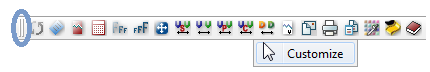 In order to customize the Advanced Options Toolbar you need to right-click on it, select Customize and the Advanced Options Toolbar Properties dialog will be shown. You can also open this dialog if you go to the main menu, select Advanced Options and Customize Toolbar from the bottom of the menu. When your buttons are hidden (as described in the About the Toolbar section) you can also use the last Customize... item from the menu that appears when pressing the The same dialog can be triggered by double-clicking the vertical lines from the beginning of the frame-specific toolbar (please take a look at the image on the right). |