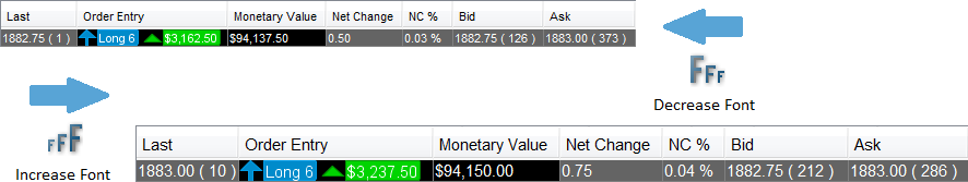Increase FontThis will increase the size of fonts that are used in Advanced Options. Take a look at the following image, that shows the Futures Table with two different font sizes.